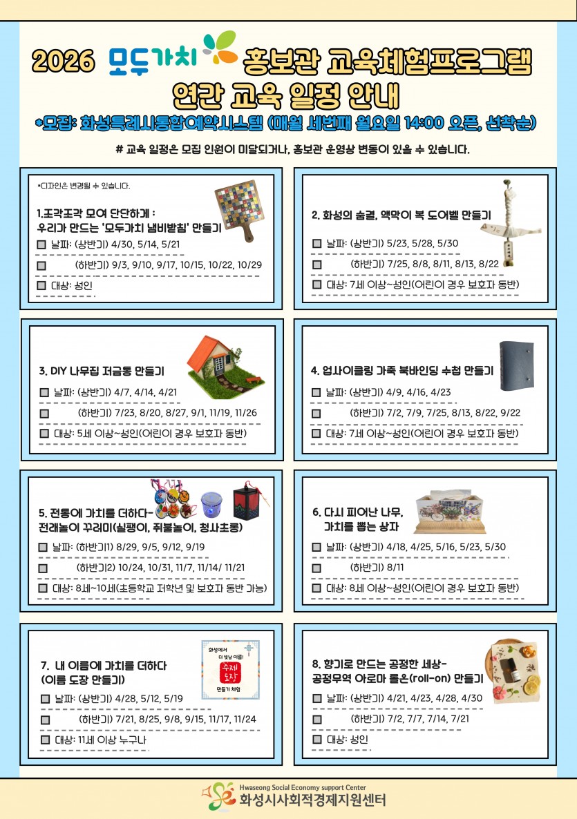 2026년 모두가치 홍보관 교육체험프로그램 연간 교육 일정 안내