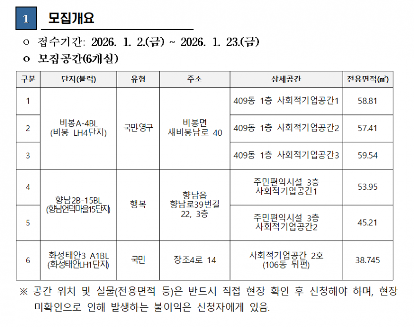 2026년 제1차 사회적기업 공간 (LH임대·행복주택 내) 입주기업 모집공고