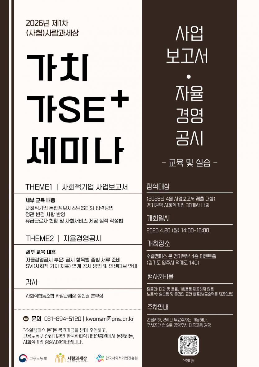 [(사협)사람과세상] 2026년 제1회 (사협)사람과세상 가치가SE+ 세미나 (~ 4.17.)
