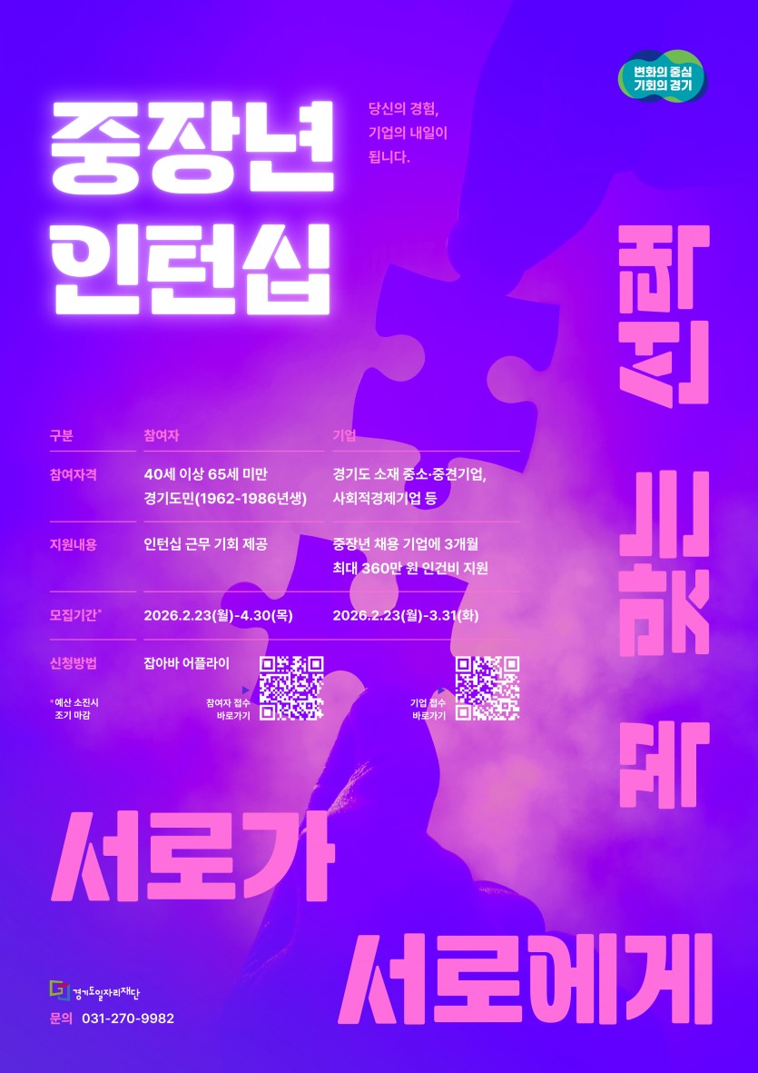 [경기도일자리재단] 2026년 '베이비부머 라이트잡' 및 '중장년 인턴십' 사업 안내