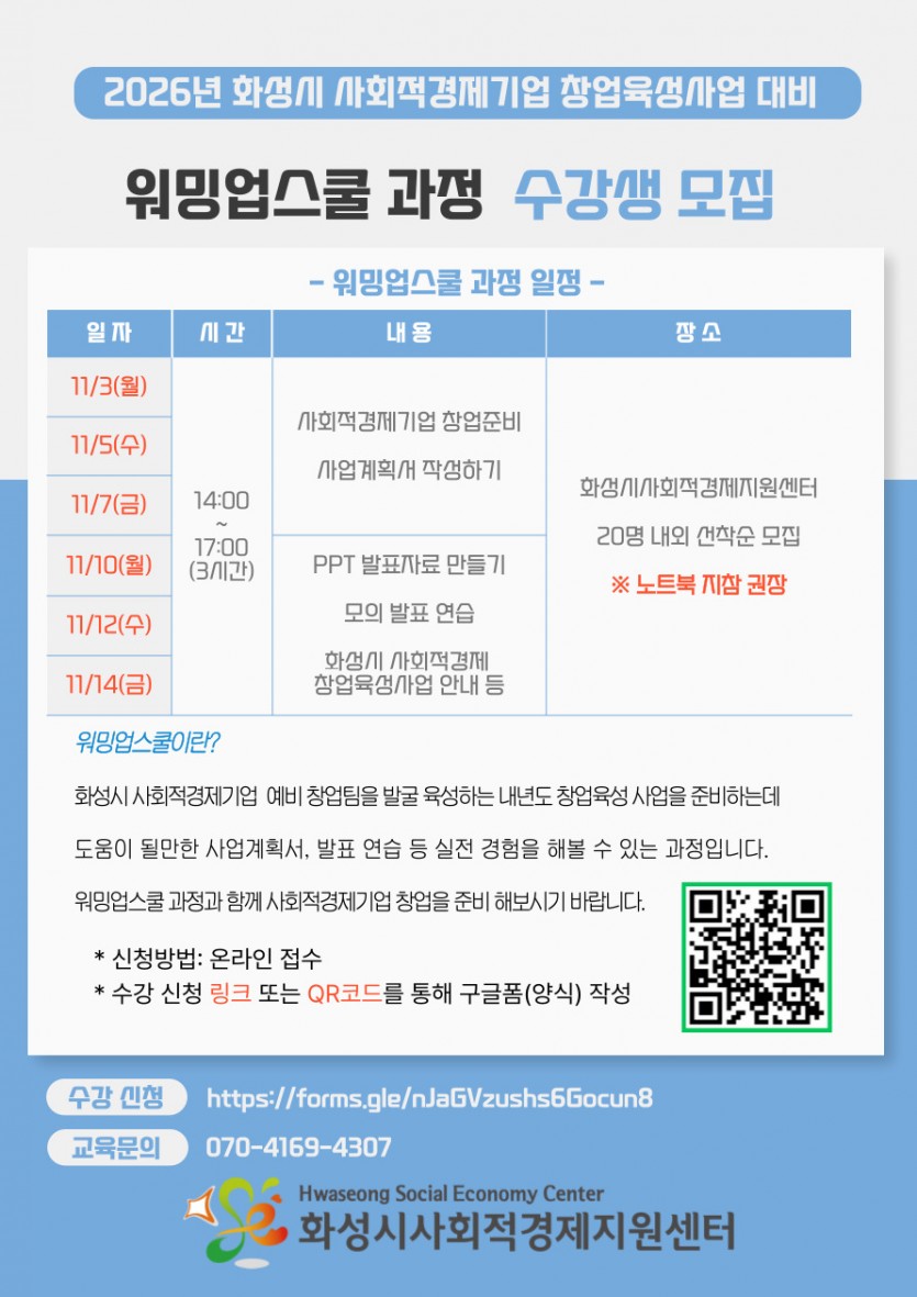 2026년 화성시사회적경제기업 창업육성사업대비 워밍업스쿨 모집
