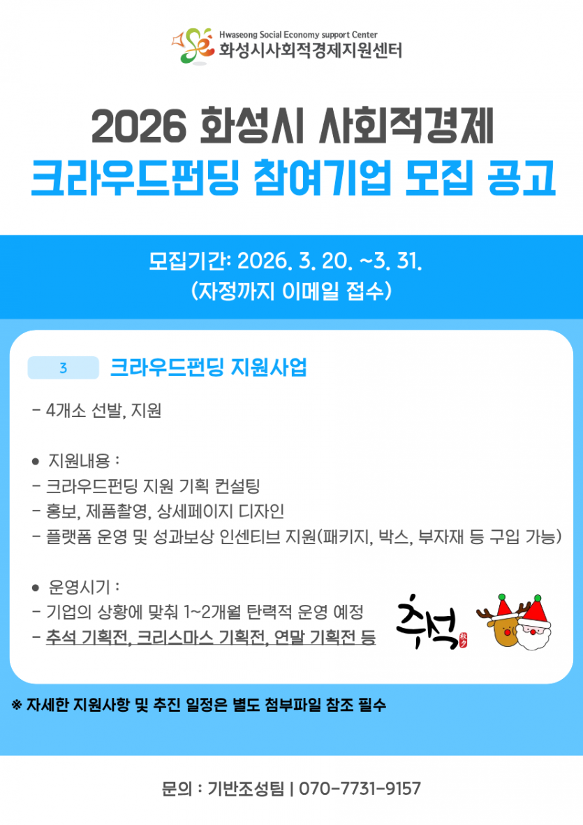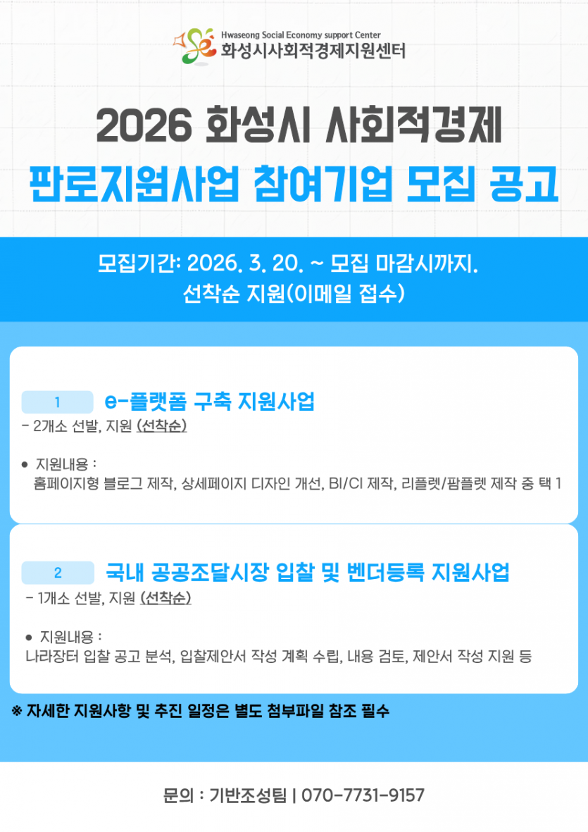 2026년 화성시 사회적경제 판로지원사업 참여기업 모집 재공고